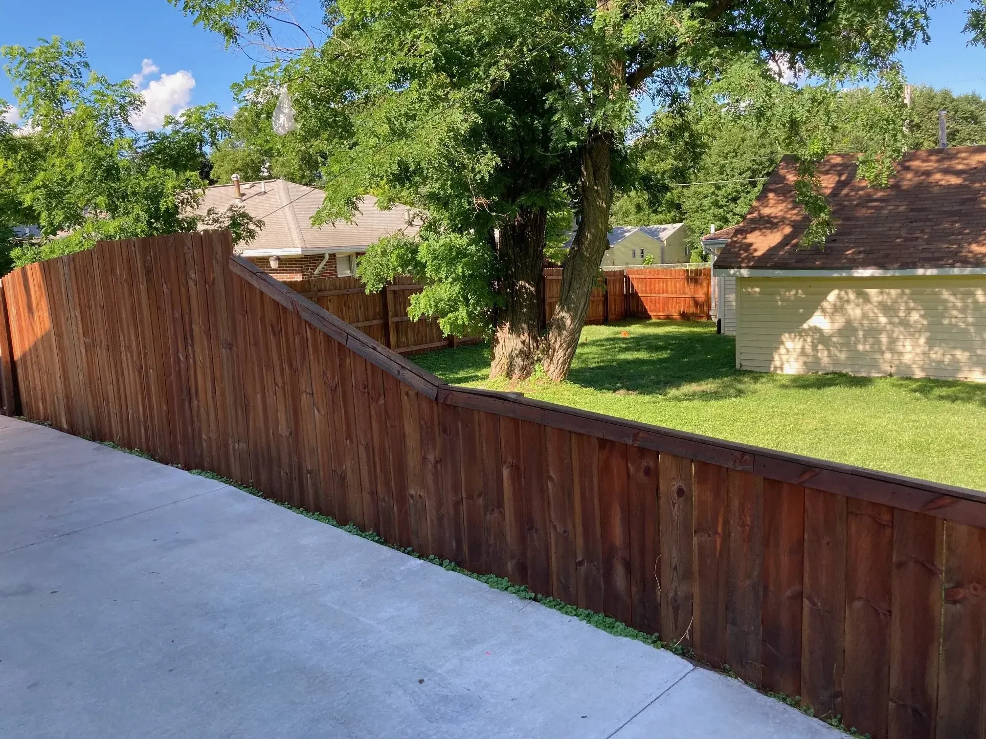 • We properly clean and prep every fence before any stain is applied. We protect your property during every application — no overspray, no shortcuts.